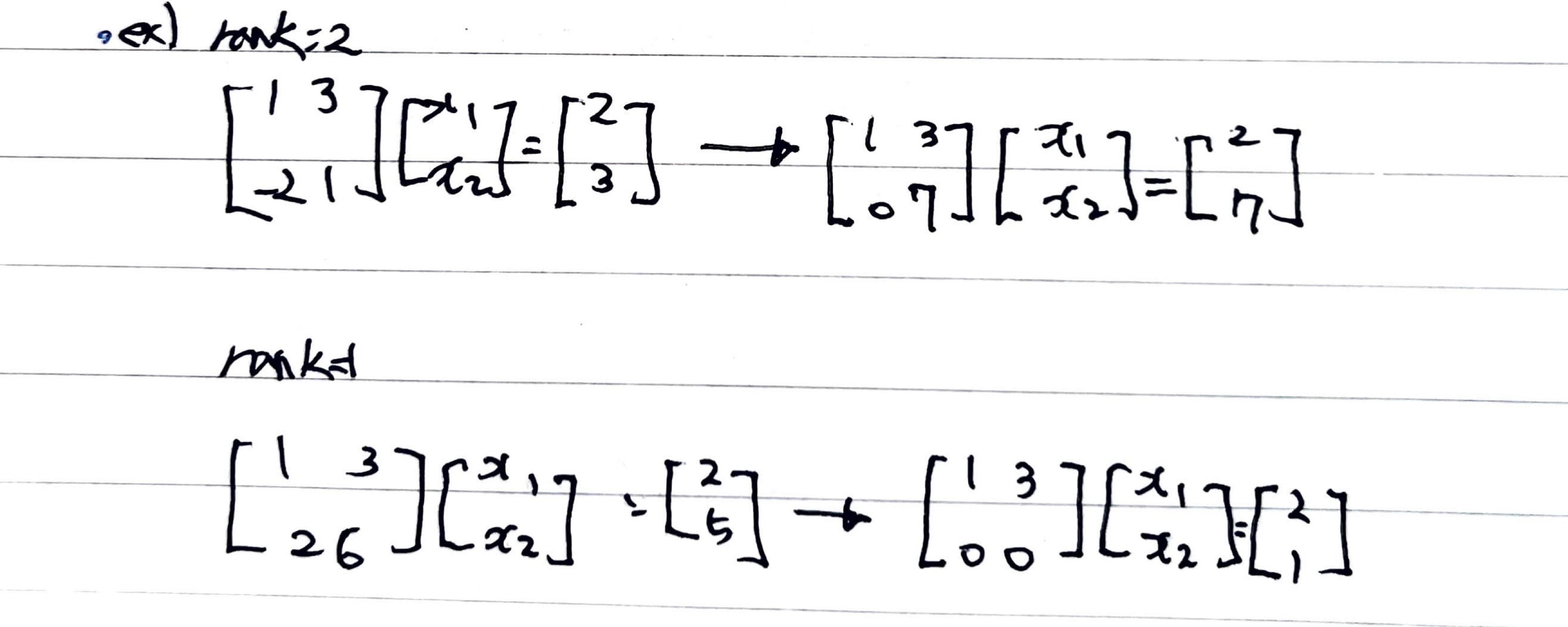 - Rank의 수의 따라 판별 할 수 있는 해의 갯수가 달라진다
