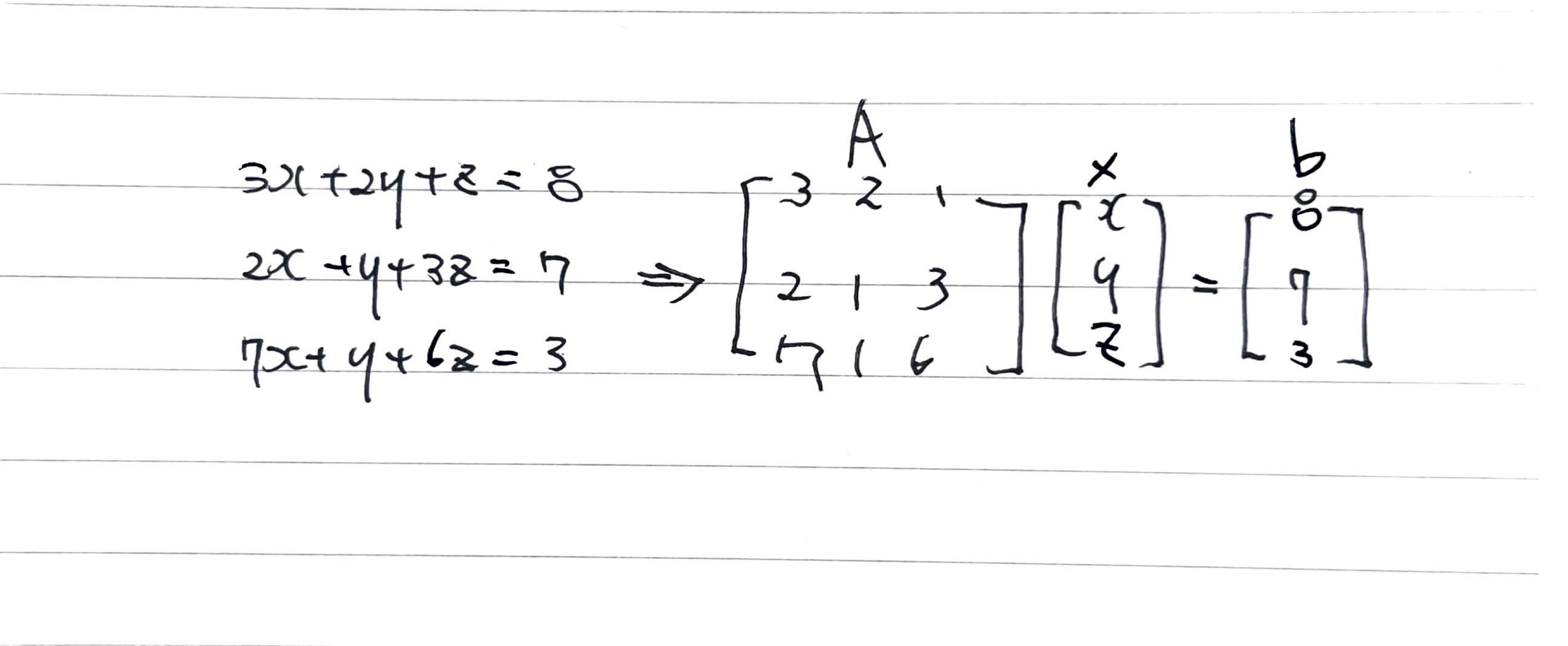 - Ax + b로의 표현으로는 A, b(linear question)과 x(미지수) 로 표현된다